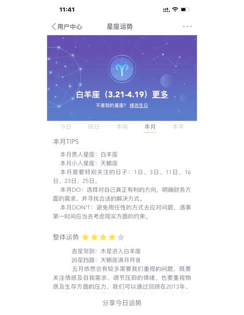 在五月,白羊座應把握時機,積極爭取自己想要的。主動與他人交流,擴大社交圈。在事業(yè)上,表現(xiàn)出自信和熱情,抓住展現(xiàn)自己能力的機會。財務方面,制定合理的理財計劃,避免不必要的開支。同時,注重身心健康,保持樂觀的心態(tài),享受生活中的美好。
