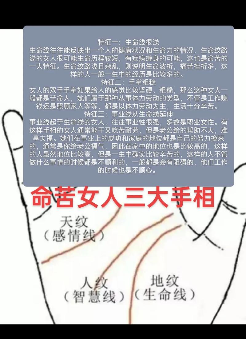 引言:手相的奧秘與魅力手相學(xué),作為一種古老的占卜藝術(shù),千百年來吸引著無數(shù)好奇者的目光。在這個現(xiàn)代社會中,手相不僅僅是一種趣味,更是揭示內(nèi)心深處的工具。特別是女性的手相,承載著她們的命運與情感,深入了解其背后的含義,將帶領(lǐng)我們進(jìn)入一個神秘的世界。