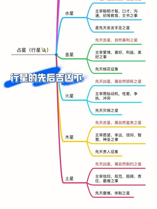 行星后天吉兇的評(píng)判,需要綜合考慮行星的性質(zhì)、廟旺休囚死、行星之間的關(guān)系、行星與命主八字的關(guān)系、行星與流年運(yùn)勢(shì)的關(guān)系等多個(gè)因素。只有綜合考慮這些因素,才能準(zhǔn)確地判斷行星的后天吉兇。