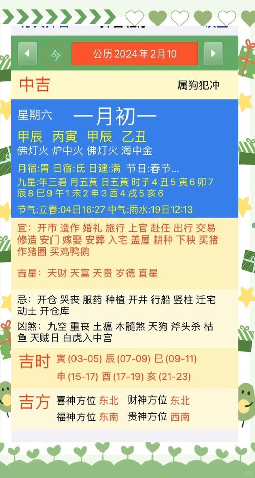 1. 大年初一出行吉日:正月初三、正月初五、正月初六、正月初九、正月初十一、正月十四、正月十八、正月二十二、正月二十四