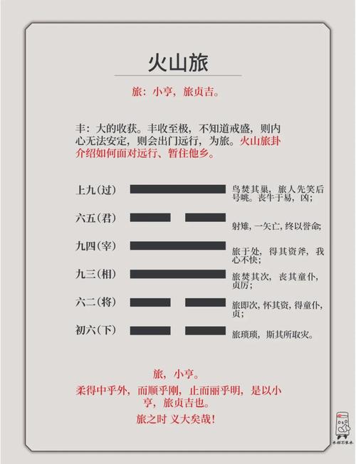 火山旅卦,旅途漫漫,但終有歸期。人生也是如此,總會(huì)經(jīng)歷各種各樣的磨難和挫折,但只要堅(jiān)持不懈,永不言敗,終能到達(dá)理想的彼岸。