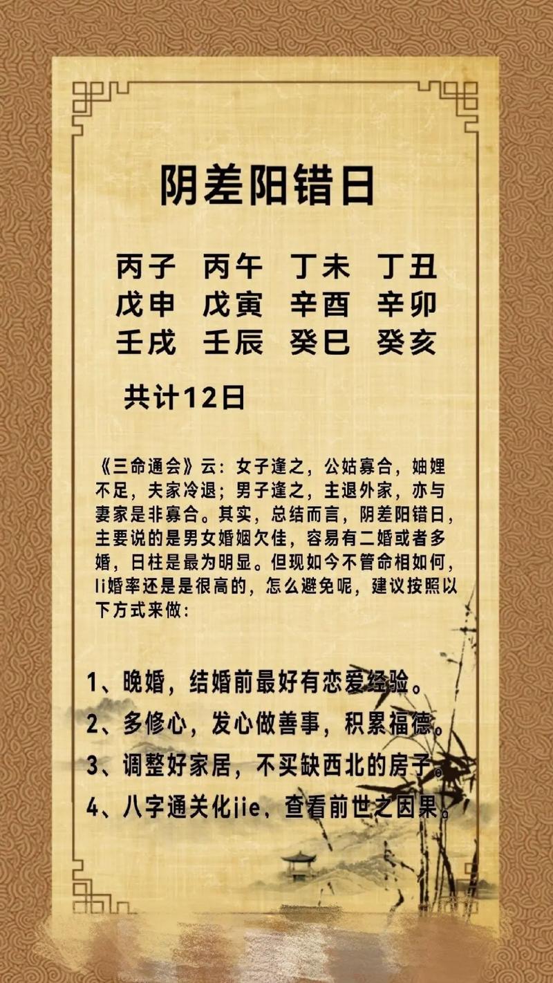 在古代命理學(xué)中,陰差陽(yáng)錯(cuò)這一概念常常與命運(yùn)的波折與困擾密切相關(guān)。特別是對(duì)于女性而言,命運(yùn)的安排往往顯得更加復(fù)雜多變。女性命格的細(xì)膩與獨(dú)特,常常決定了她們?cè)谏钪械臋C(jī)遇與挑戰(zhàn)。一旦犯上陰差陽(yáng)錯(cuò),便可能影響其一生的運(yùn)勢(shì)。本文將深入探討女命犯陰差陽(yáng)錯(cuò)的成因、表現(xiàn)及應(yīng)對(duì)之道。
