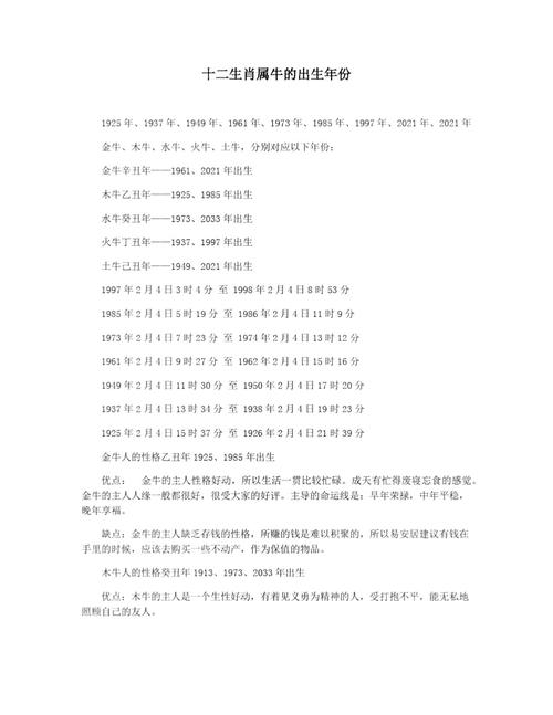 屬牛的人,以穩(wěn)重、踏實(shí)和勤奮著稱。對(duì)于一月出生的屬牛人,他們的命運(yùn)可謂是充滿機(jī)遇與挑戰(zhàn)的獨(dú)特旅程。這段時(shí)間的出生,使他們?cè)谛愿裆暇邆淞烁蛹?xì)膩和敏感的一面,雖然外表上看似堅(jiān)定,但內(nèi)心卻常常在思考人生的種種可能性。