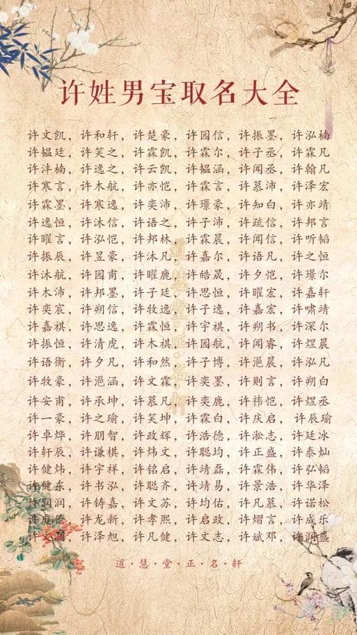 木助木: 可以選擇五行屬木的字,如“林”、“森”、“柏”等,組合成“許林”、“許森”、“許柏”等,寓意茁壯成長,生機(jī)勃勃。
