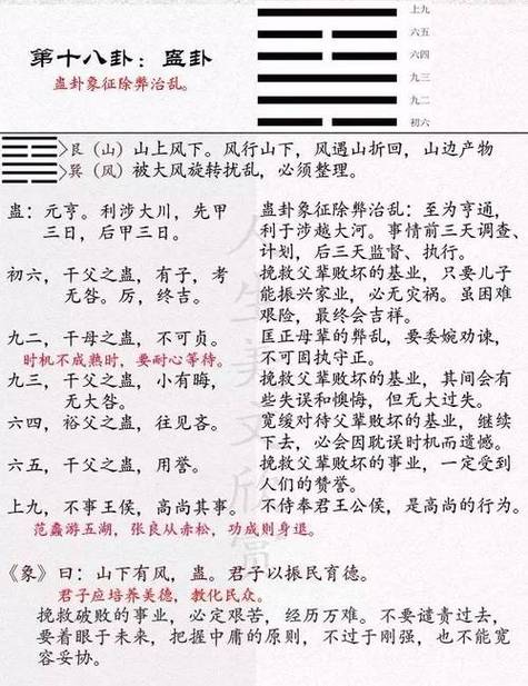 蠱卦的價值與反思蠱卦作為一種文化符號,其價值超越了歷史的邊界。它不僅是占卜工具,更是生活的哲學(xué)。通過對蠱卦的深入研究與反思,我們不僅能夠更好地理解周易的智慧,還能夠在實際生活中運用這些智慧,提升自己的生活品質(zhì)。無論是吉還是兇,蠱卦都提醒我們:在變化中把握自己,才能迎接生命的每一次挑戰(zhàn)。