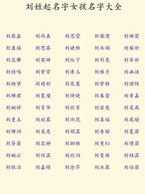 活潑靈動: 強調(diào)個性鮮明,如“劉梓悅”、“劉欣瑤”、“劉藝嵐”。這類名字充滿活力,展現(xiàn)出女孩的朝氣蓬勃。