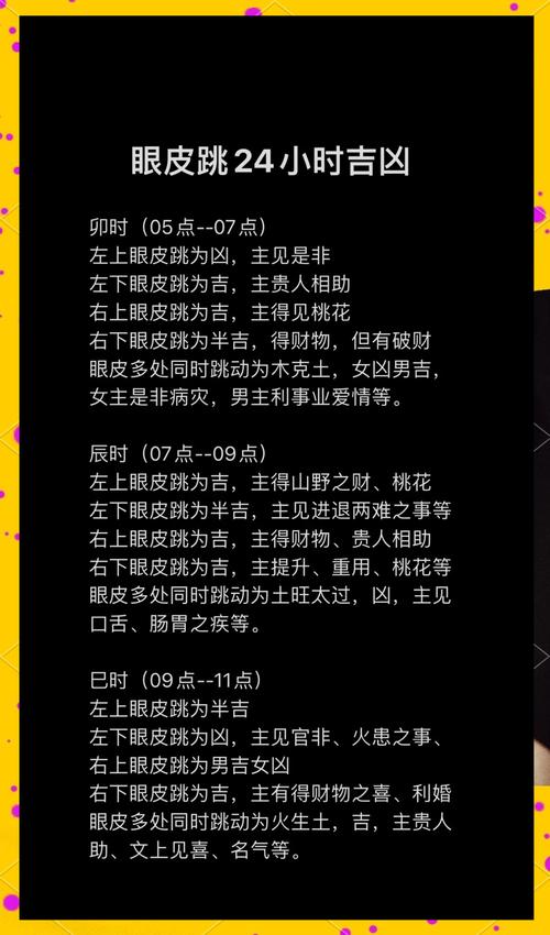 眼皮跳動(dòng),自古以來(lái)就被認(rèn)為是吉兇的預(yù)兆。不同星期眼皮跳,所代表的吉兇也不同。