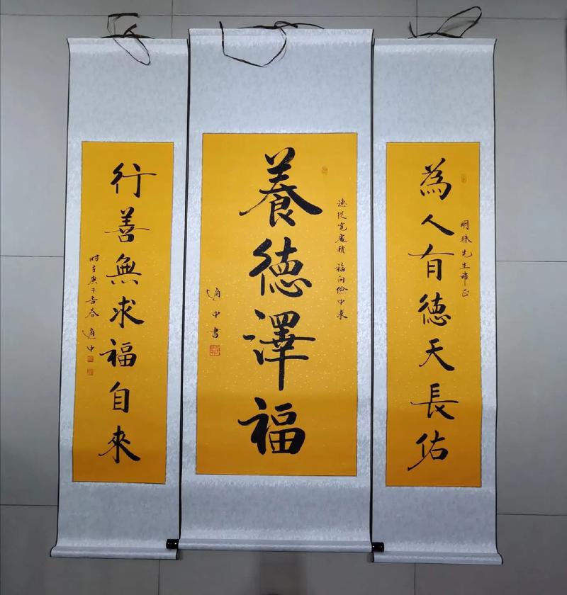書法作品的色彩也有一定的風(fēng)水講究。紅色和金色寓意喜慶和富貴,適合懸掛于客廳或辦公室;黑色和藍(lán)色寓意沉穩(wěn)和踏實(shí),適合懸掛于書房或辦公區(qū)。