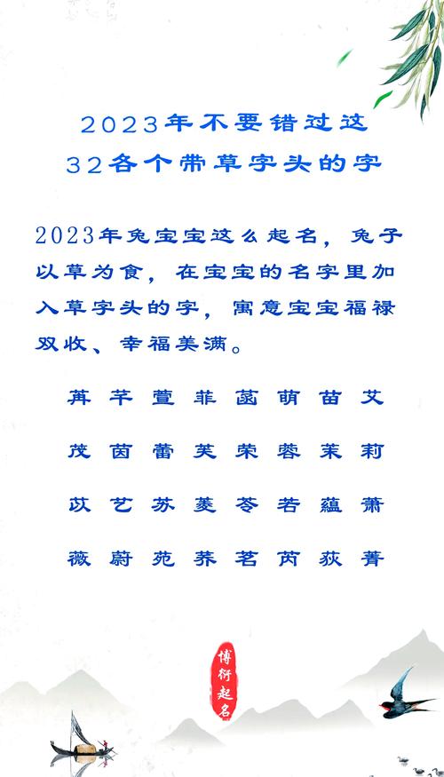 我們需要了解“草字頭”的文化內(nèi)涵。在中國(guó)傳統(tǒng)文化中,草木象征著生命力、活力與希望。 _草木的生長(zhǎng)代表著欣欣向榮,蓬勃發(fā)展,寓意著孩子擁有無限的潛力與成長(zhǎng)空間。_ 古人常以草木比喻賢士,如“蘭芷生于深林,不以無人而不芳”,贊揚(yáng)其高潔的品格。草字頭在取名時(shí),可以賦予孩子一種積極向上、堅(jiān)韌不拔的精神力量。