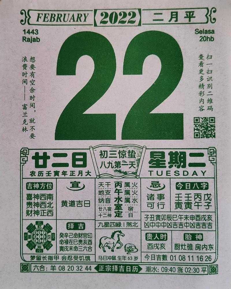 2022年2月2日,星期三,是一個黃道吉日,適合舉行各種慶典活動,例如婚禮、開業(yè)典禮和喬遷之喜。這一天也是祈福的好日子,人們可以去寺廟或教堂祈求平安、健康和好運(yùn)。