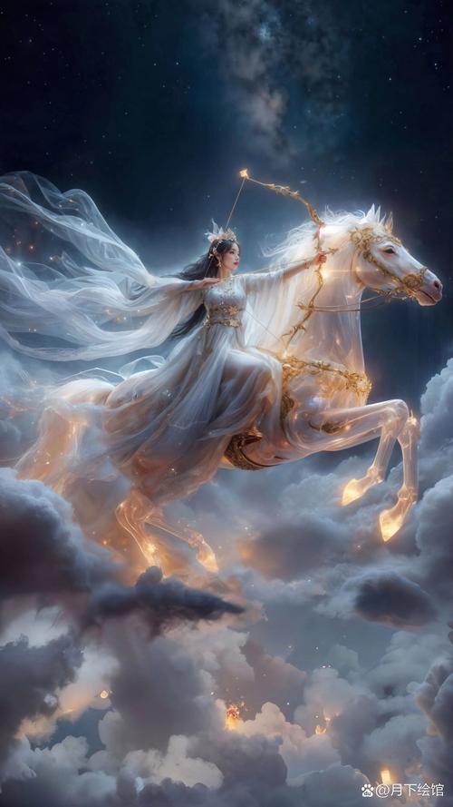 在月光下,射手座的女子拉開弓弦,瞄準(zhǔn)夜空中的明月,射出一支支蘊(yùn)含著夢(mèng)想與希望的箭矢,劃破夜空,直射蒼穹,留下一個(gè)個(gè)不可磨滅的印記。