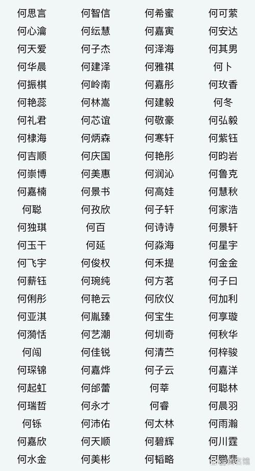 為寶寶起名是父母賦予孩子的第一份珍貴禮物,一個(gè)好名字不僅承載著父母的美好祝愿,更會(huì)伴隨孩子一生,影響其性格、運(yùn)勢(shì)與人際關(guān)系。以“何”姓男寶寶為例,我們需考慮姓氏的音韻、字形以及與名字的整體搭配,才能選取一個(gè)寓意吉祥、響亮悅耳、且符合寶寶個(gè)人特質(zhì)的好名字。