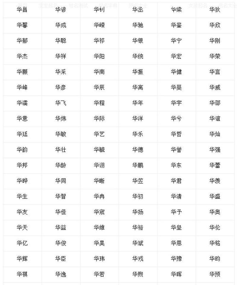 雙字名: 注意聲調(diào)的搭配,例如“華澤(平仄)”、“華睿(平仄)”、“華安(平平)”等。