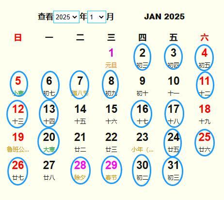 5. 2025年1月19日,星期天,農(nóng)歷臘月二十