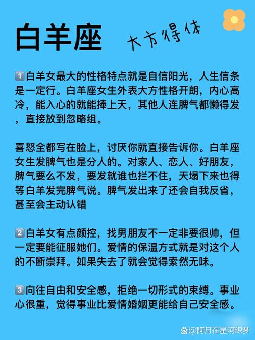 白羊座女生以其勇敢和獨(dú)立而著稱(chēng)。她們不怕挑戰(zhàn),并總是樂(lè)于嘗試新事物。她們不依賴(lài)他人,而是依靠自己的力量和決心。這種獨(dú)立性讓她們?cè)谌魏晤I(lǐng)域都能獲得成功。
