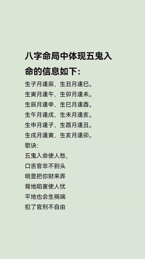 在生辰八字算命中,八字命里犯五鬼可不是什么好事。五鬼指的是天干地支中相沖相刑的五個(gè)方位,分別是子午卯酉和寅申巳亥。犯五鬼意味著你的八字中這五個(gè)方位存在沖刑,輕則運(yùn)勢(shì)不順,重則災(zāi)禍不斷。