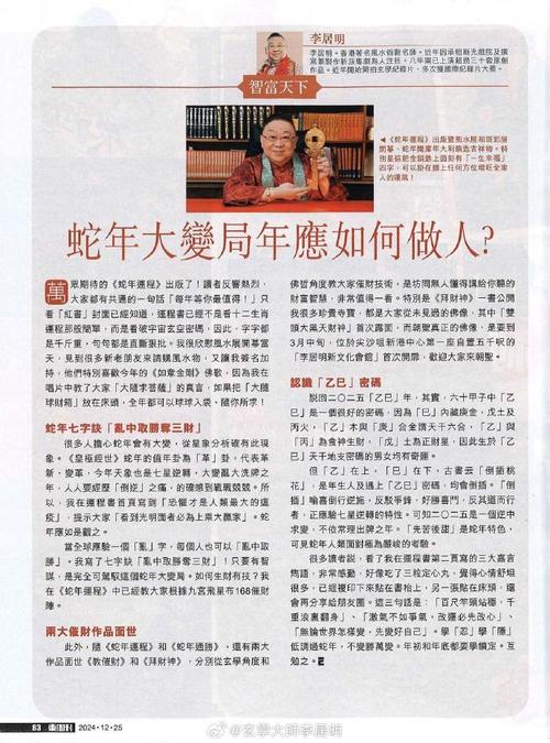 李居明通過(guò)對(duì)企業(yè)家八字命理的分析,不僅揭示了他的財(cái)富密碼,也為他的人生發(fā)展提供了指引。八字命理作為一門古老的預(yù)測(cè)學(xué),能夠幫助人們了解自己的命運(yùn)走向,從而更好地把握人生機(jī)遇,趨吉避兇。