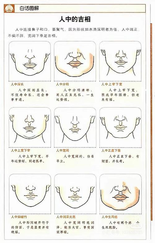 人中,位于鼻下唇上之間,相學(xué)中認(rèn)為,人中代表了一個(gè)人的意志力、忍耐力以及晚年運(yùn)勢(shì)。