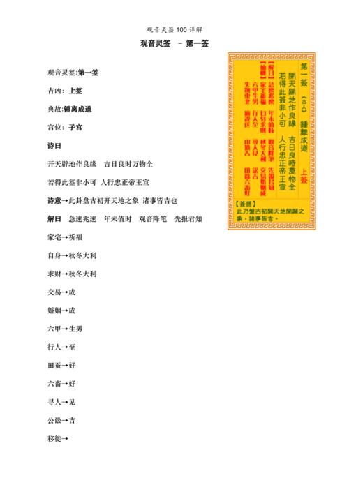 觀音靈簽各宮卦的詳解 觀音靈簽十二宮注解
