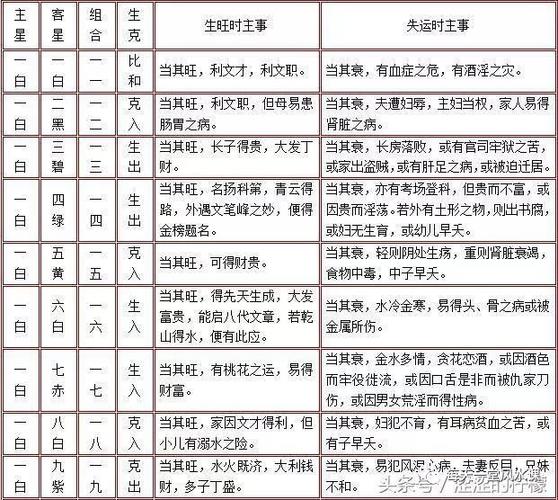 如果流年為一白九紫組合,則說明該年驛馬星動,利于外出發(fā)展、求名利。但要注意,如果流月為九紫二黑組合,則需防小人算計、財運不佳。