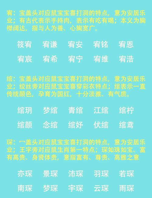 2. 考慮生肖特性: 雖然“佳”字本身沒有直接體現(xiàn)生肖鼠的特性,但可以通過組合來實現(xiàn)。例如,可以選擇帶有“宀”字根的字與“佳”字組合,寓意鼠寶寶有家可歸,生活安穩(wěn)。