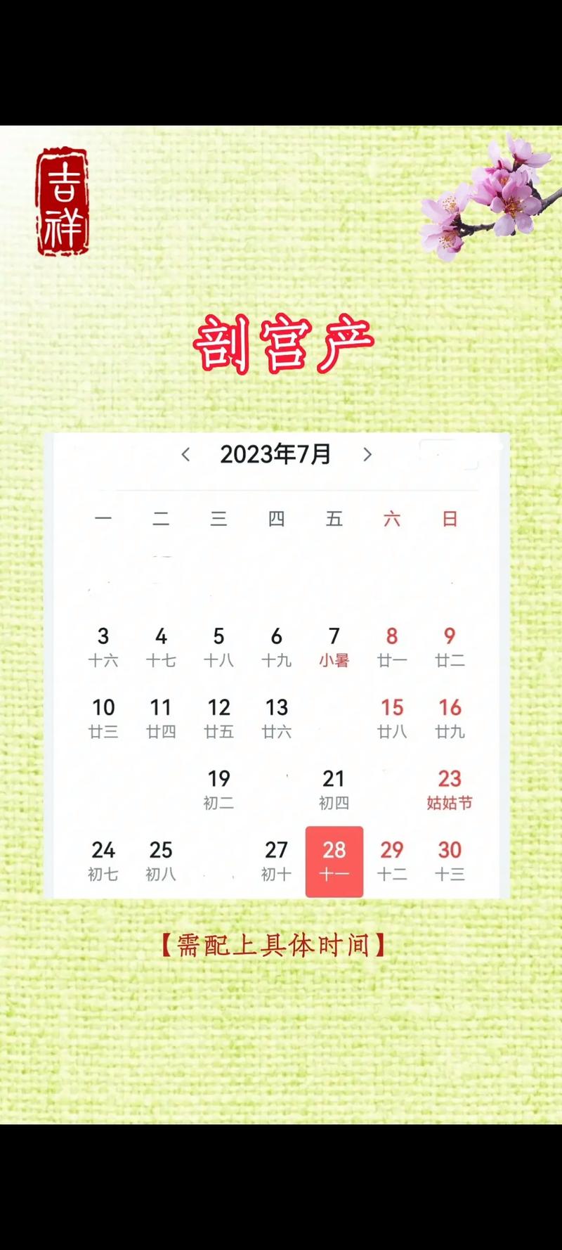 2024年8月15日之前適合剖腹產(chǎn)的吉日包括8月3日、8月10日、8月11日、8月12日、8月16日、8月22日和8月28日。選擇剖腹產(chǎn)吉日時,應結合八字命理、遵循醫(yī)囑,并考慮孕婦和胎兒的健康。最終的決定應以醫(yī)生的專業(yè)意見為準。