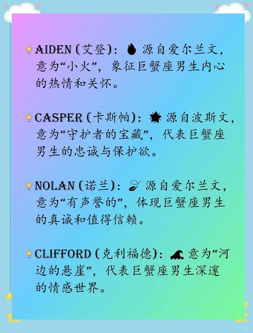 巨蟹座是十二星座中以敏感、體貼和戀家著稱的星座。為巨蟹座男寶寶選擇一個(gè)合適的名字,不僅可以體現(xiàn)其星座特質(zhì),更能寄托父母的期望和祝福。
