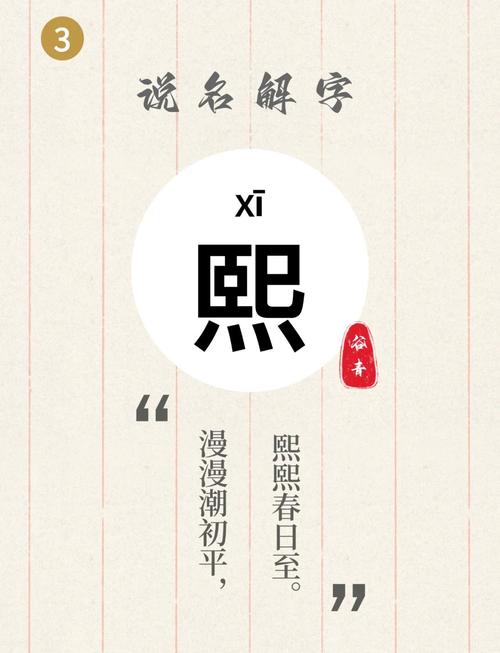 進(jìn)一步分析,“熙”字由“匚”、“米”、“臣”組成。在漢字結(jié)構(gòu)中,“匚”代表儲(chǔ)藏,寓意著內(nèi)在的涵養(yǎng)與積累;“米”是生活的基礎(chǔ),象征著物質(zhì)豐裕,也暗示著踏實(shí)穩(wěn)重;而“臣”則代表著服從與謙遜,也可能蘊(yùn)含著領(lǐng)導(dǎo)力與擔(dān)當(dāng)。這三個(gè)部分結(jié)合在一起,既體現(xiàn)了“熙”字主人內(nèi)在的豐盈,也展現(xiàn)了其外在的謙和與責(zé)任感。 這種內(nèi)外兼修的特質(zhì),有助于他們?cè)谑聵I(yè)上取得成功,在生活中獲得幸福。