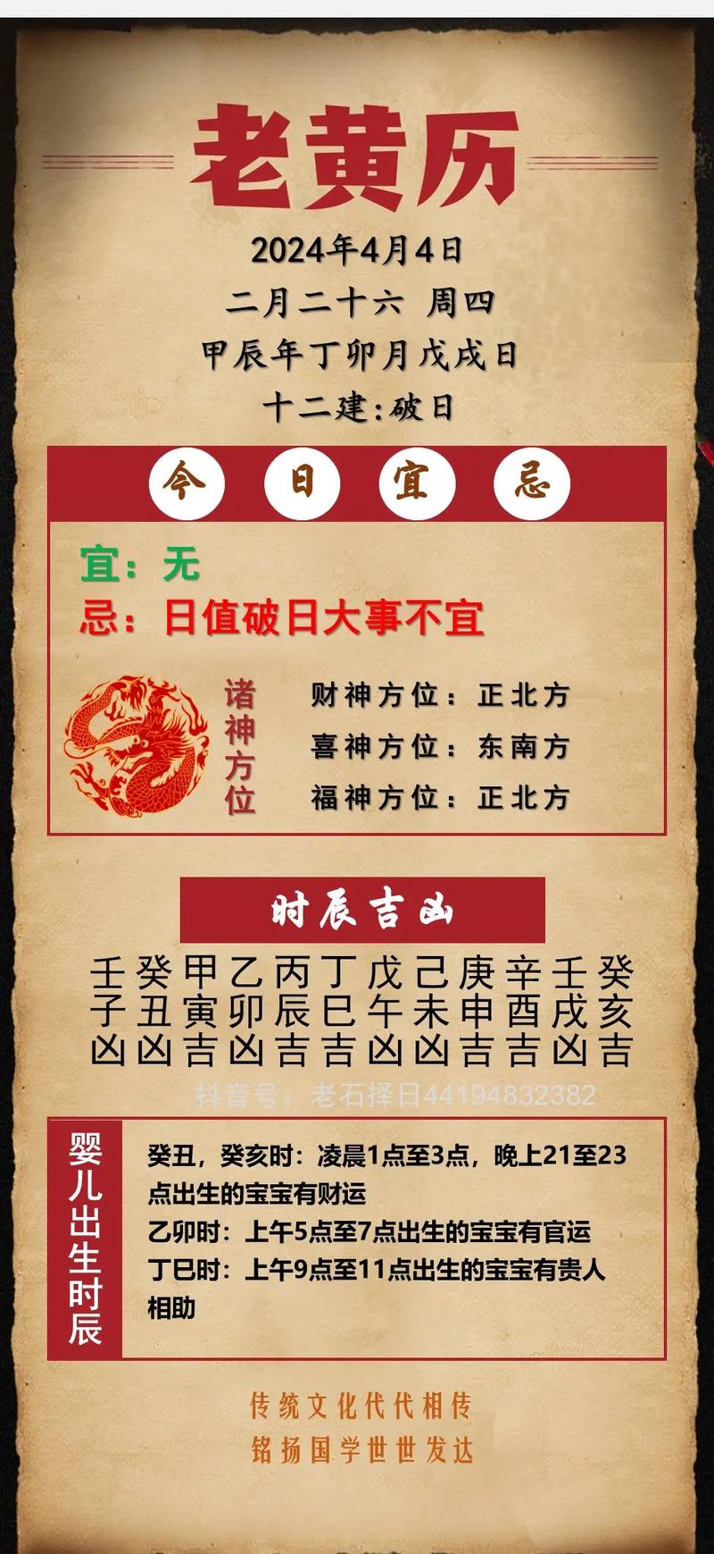 四月,春暖花開,萬物復(fù)蘇。在這個(gè)充滿生機(jī)的季節(jié)里,您是否也對未來滿懷期待? 想知道四月有哪些吉日良辰,適合開啟新篇章嗎? 想避開兇煞之日,讓生活更加順?biāo)靻? 不用擔(dān)心,四月日歷查詢黃歷吉兇,為您指點(diǎn)迷津,助您踏上人生坦途。