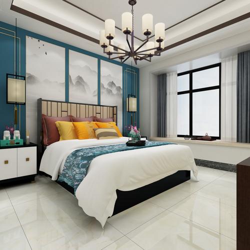 中式風(fēng)格的臥室,可以選擇深色系的地磚,如黑色、深棕色等。