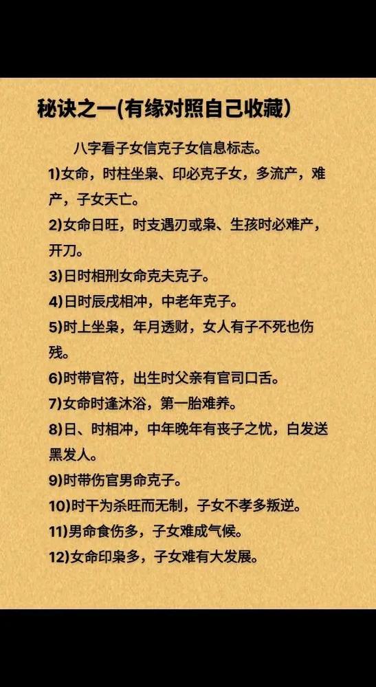 俗話說,不孝有三,無后為大。不少女性朋友會因沒有子女而備受煎熬,甚至成為她們的夢魘。其實,子女緣的深淺與否,從八字命理上是可以探究一二的。