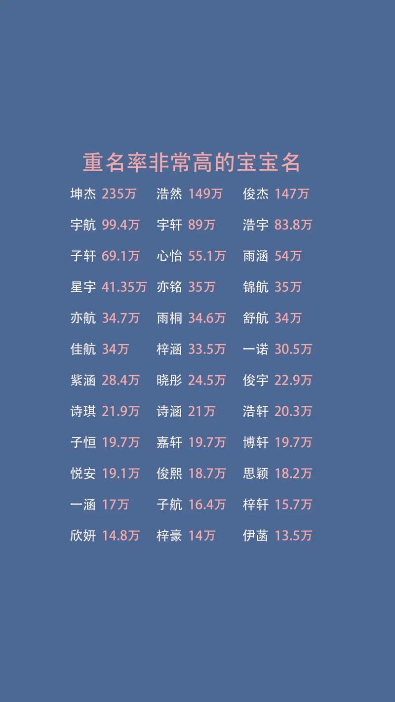 高頻名字:常見的高頻名字包括“子涵”、“梓涵”、“子軒”、“浩宇”等,這些名字在各個(gè)年代都非常流行。