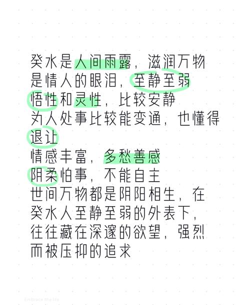 在中國傳統(tǒng)命理學(xué)中,八字命理為我們提供了深刻的洞見??鳛橐环N獨特的命格,具備著溫潤如水的性格特質(zhì)和深邃的內(nèi)涵。她們通常情感豐富,善解人意,但在愛情和人生的選擇中,也面臨著許多挑戰(zhàn)。那么,葵水命女究竟適合什么樣的男人呢?