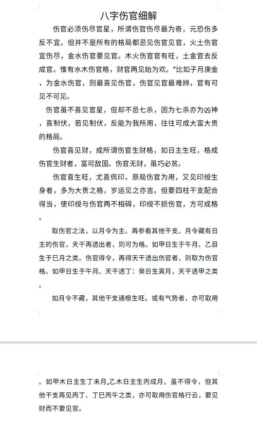 傷官在八字中有著復(fù)雜的影響,它既可以帶來聰明才智,也可以導(dǎo)致性格偏激、言行不當(dāng)。因此,在分析八字時,需要注意傷官的具體組合和位置,以準(zhǔn)確判斷其對命運的影響。