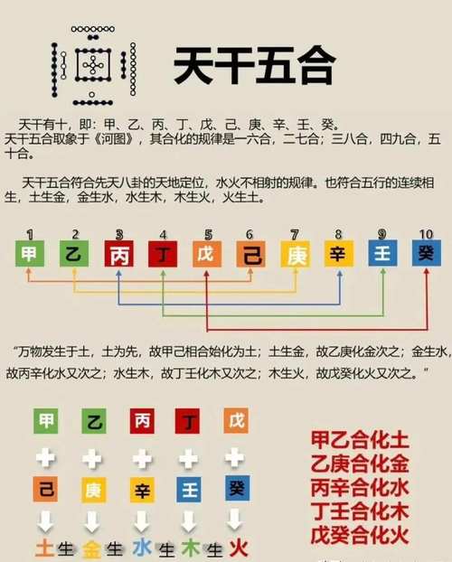 在八字命理中,天干五合是一門重要的知識(shí),它可以幫助我們判斷一個(gè)人的運(yùn)勢(shì)吉兇。天干五合是指天干之間的相合關(guān)系,分為甲己合、乙庚合、丙辛合、丁壬合、戊癸合。