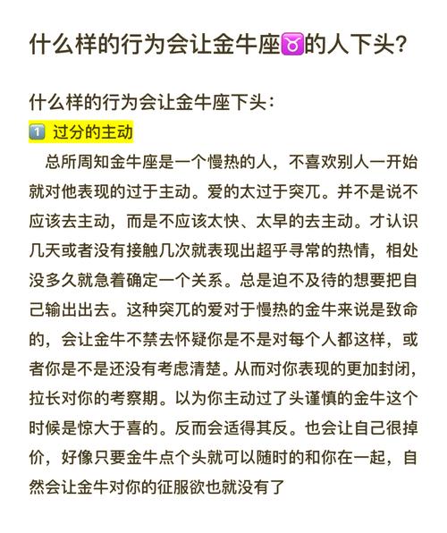 金牛座的人往往給外人一種固執(zhí)、頑固的印象。他們堅(jiān)持自己的觀點(diǎn),難以被別人的意見(jiàn)所動(dòng)搖,這雖然令人生氣,但他們的堅(jiān)定和執(zhí)著有時(shí)也令人敬佩。