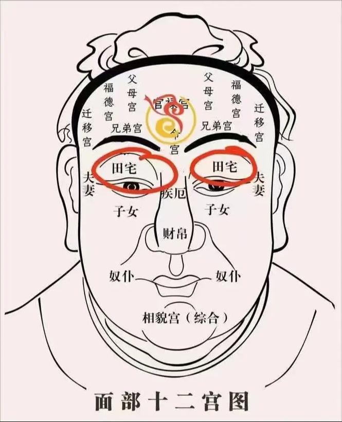 面相學(xué)中,宅田指眉毛與眼睛之間的部位,承接印堂,反映人的內(nèi)心世界和內(nèi)心活動。
