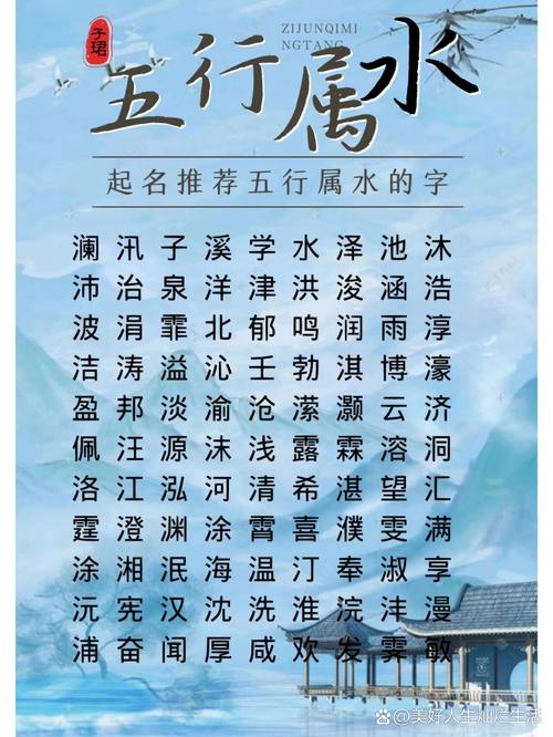 水比水:水與水相助,屬水姓名與屬水的字搭配,能增強水的力量,但需要注意的是,水過旺則容易導(dǎo)致情緒波動。