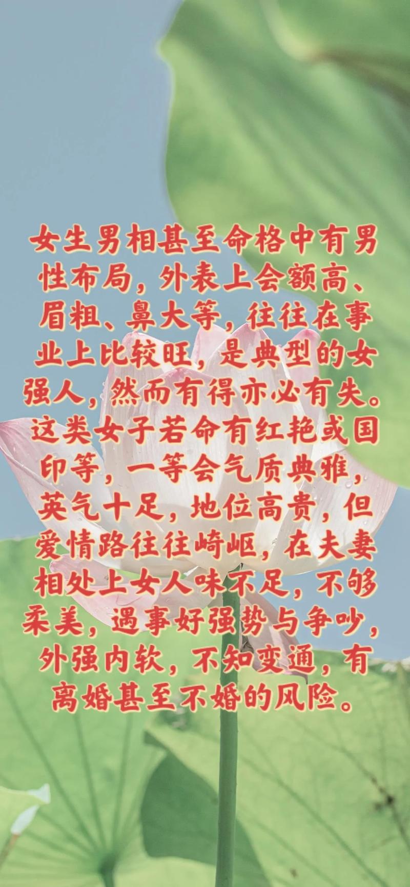 “女長男相”的命理現(xiàn)象,不僅僅是對外貌特征的描述,更是命運與性格的深刻交織。這類女性在職場上展現(xiàn)出的果敢與獨立,使她們能夠走得更遠,但也需注意人際關(guān)系的平衡與調(diào)和。只有在自我認知與社會認同之間找到最佳切入點,才能真正實現(xiàn)個人的全面發(fā)展。