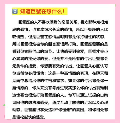 記住,讓巨蟹座心動需要時間和真誠。以耐心和同理心對待他們,用你的愛和關(guān)懷贏得他們的心。