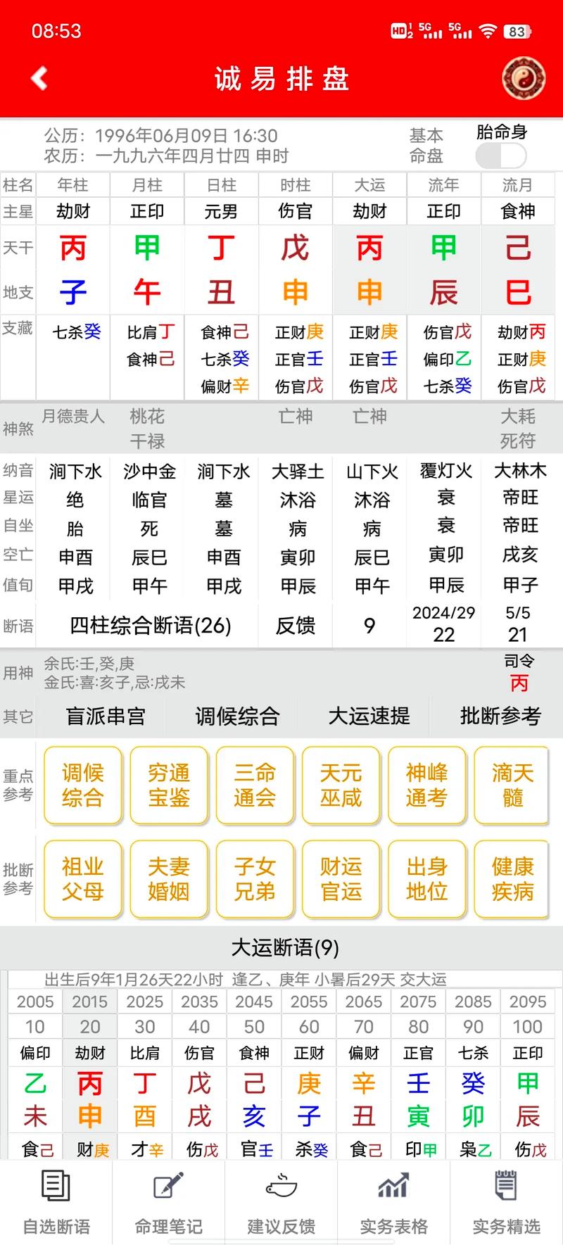 4. 用神互補(bǔ):在八字合婚中,男女雙方的用神如果能夠互補(bǔ),即五行屬性相互匹配、協(xié)調(diào),通常被認(rèn)為是最上乘的婚配方式,有助于婚姻美滿。