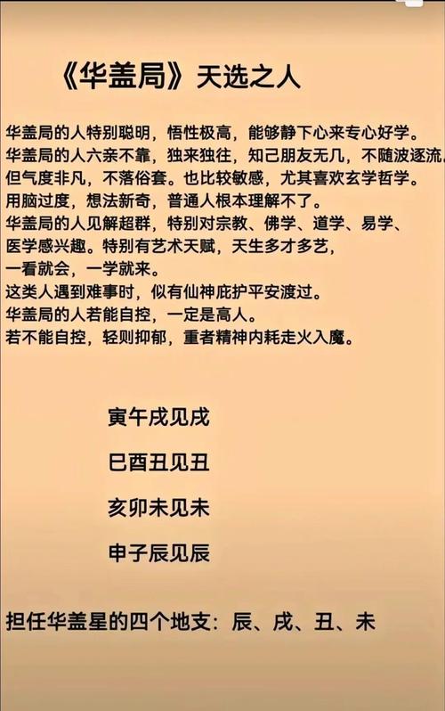 命帶華蓋,源于古老的命理學(xué),象征著一種獨(dú)特的命格特征。這一術(shù)語不僅在命理學(xué)中引起了廣泛的關(guān)注,還引發(fā)了人們對(duì)命運(yùn)和人生的深思。華蓋,顧名思義,如同一層保護(hù)傘,意喻著其人在生活中得到了某種特殊的庇佑或恩惠。那么,命帶華蓋究竟意味著什么?它又如何影響一個(gè)人的性格和命運(yùn)?