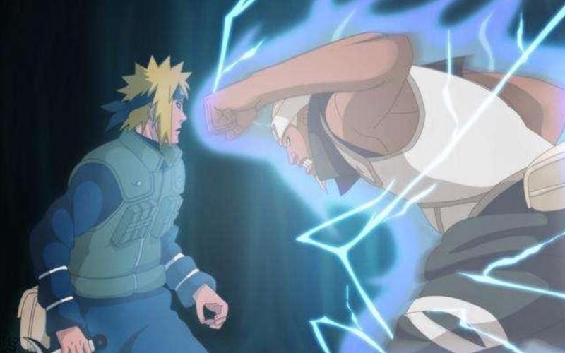 波風(fēng)水門首先使出時(shí)空間忍術(shù),瞬移到艾的面前,一記螺旋丸直擊艾的頭部。艾也不甘示弱,用雷遁查克拉模式強(qiáng)化自己的身體,硬生生抗住了波風(fēng)水門的攻擊。