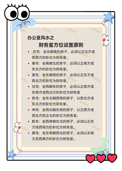財(cái)務(wù)室的位置很重要。財(cái)務(wù)室應(yīng)該位于公司或家庭的東北方或西北方。這兩個(gè)方位都是吉祥方位,有利于財(cái)運(yùn)。財(cái)務(wù)室的形狀也很重要。財(cái)務(wù)室的形狀應(yīng)該方正,不能是三角形、圓形或其他不規(guī)則形狀。因?yàn)榉秸男螤钣欣诰奂?cái)氣。