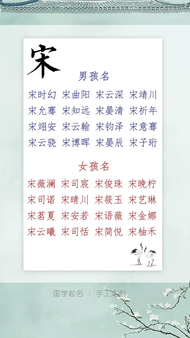 基于以上分析,以下提供幾種起名策略和常用字推薦,供宋氏家族參考: