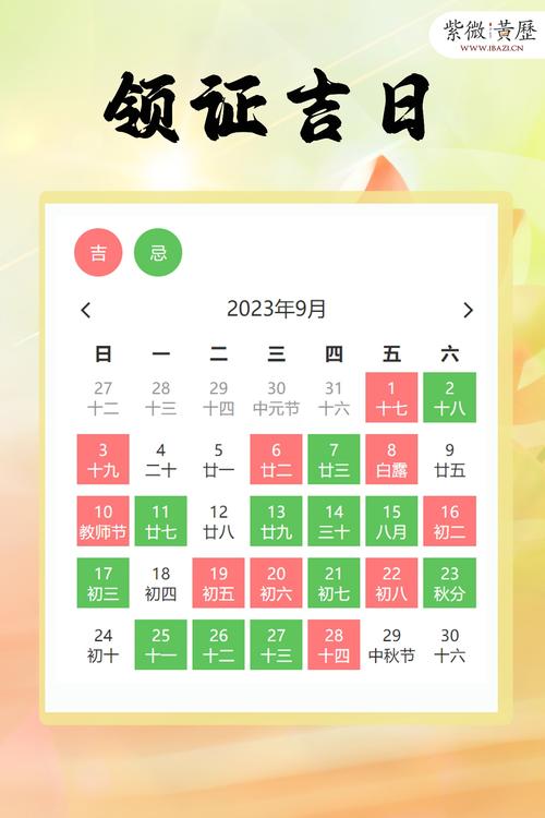 在人生旅途上,吉日被認(rèn)為是特別適合重大事件的日子,如訂婚、結(jié)婚、開(kāi)業(yè)等。當(dāng)您計(jì)劃在2016年9月舉行重要活動(dòng)時(shí),查詢吉日可以為您未來(lái)的重大事項(xiàng)保駕護(hù)航。