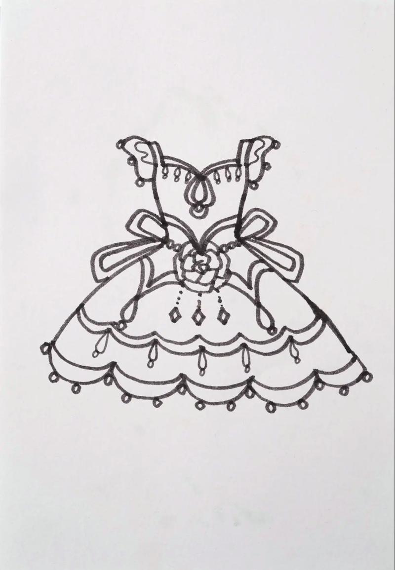 從腰部向下畫出多條曲線,形成裙擺。