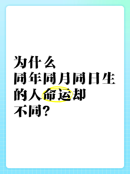 在這個(gè)充滿變數(shù)和不確定性的世界里,命運(yùn)常常被人們所探討。特別是當(dāng)我們看到同年同月同日出生的人時(shí),難免會(huì)產(chǎn)生這樣的疑問(wèn):他們的命運(yùn)是否真的相似?這種好奇心推動(dòng)著人們?nèi)ヌ接懗錾掌谂c命運(yùn)之間的關(guān)系,尤其是在心理學(xué)、占星學(xué)和社會(huì)學(xué)的交匯點(diǎn)上,答案似乎更加撲朔迷離。