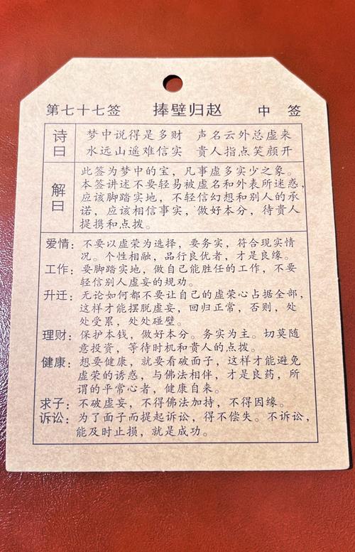 運勢分析:第七簽運勢總體來說是比較平穩(wěn)的,沒有大的波折。事業(yè)運勢平平,財運不佳,感情運勢尚可,健康運勢良好。