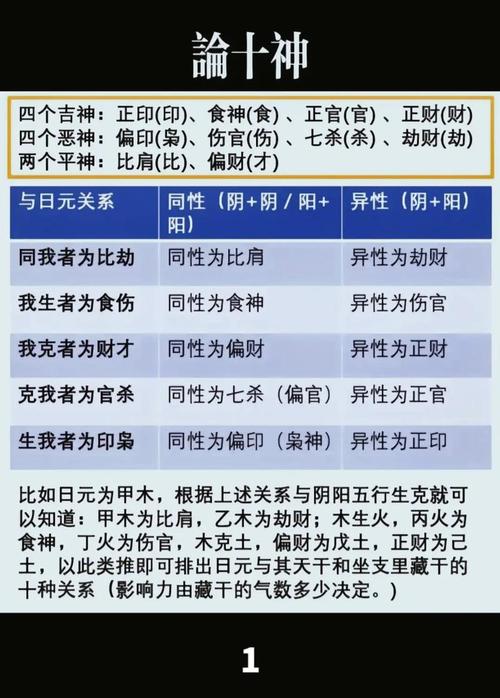 然后,根據(jù)這些天干地支之間的關(guān)系,來推導(dǎo)出十神。十神包括比肩、劫財、食神、傷官、正財、偏財、正官、七殺、正印和偏印。這十種神只代表著不同的性格特質(zhì)和人生經(jīng)歷。